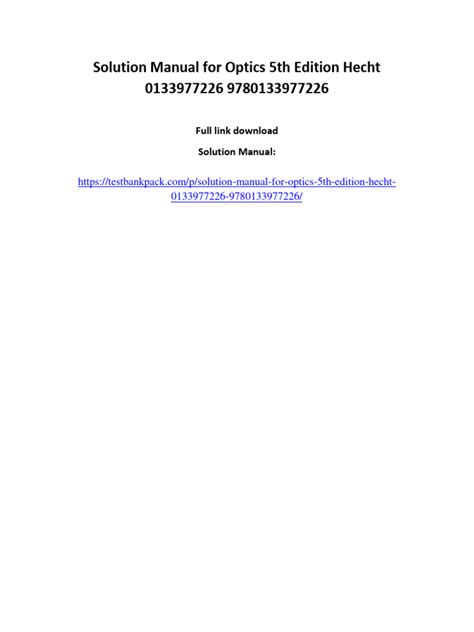 Download online Optics Eugene Hecht Solution Manual Download Doc